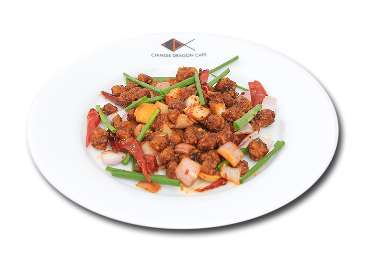 Lightly battered succulent soya meat cooked to perfection with a blend of aromatic spices and dried red chillies. Each bite offers a tantalizing combination of heat, smokiness, and savory goodness.